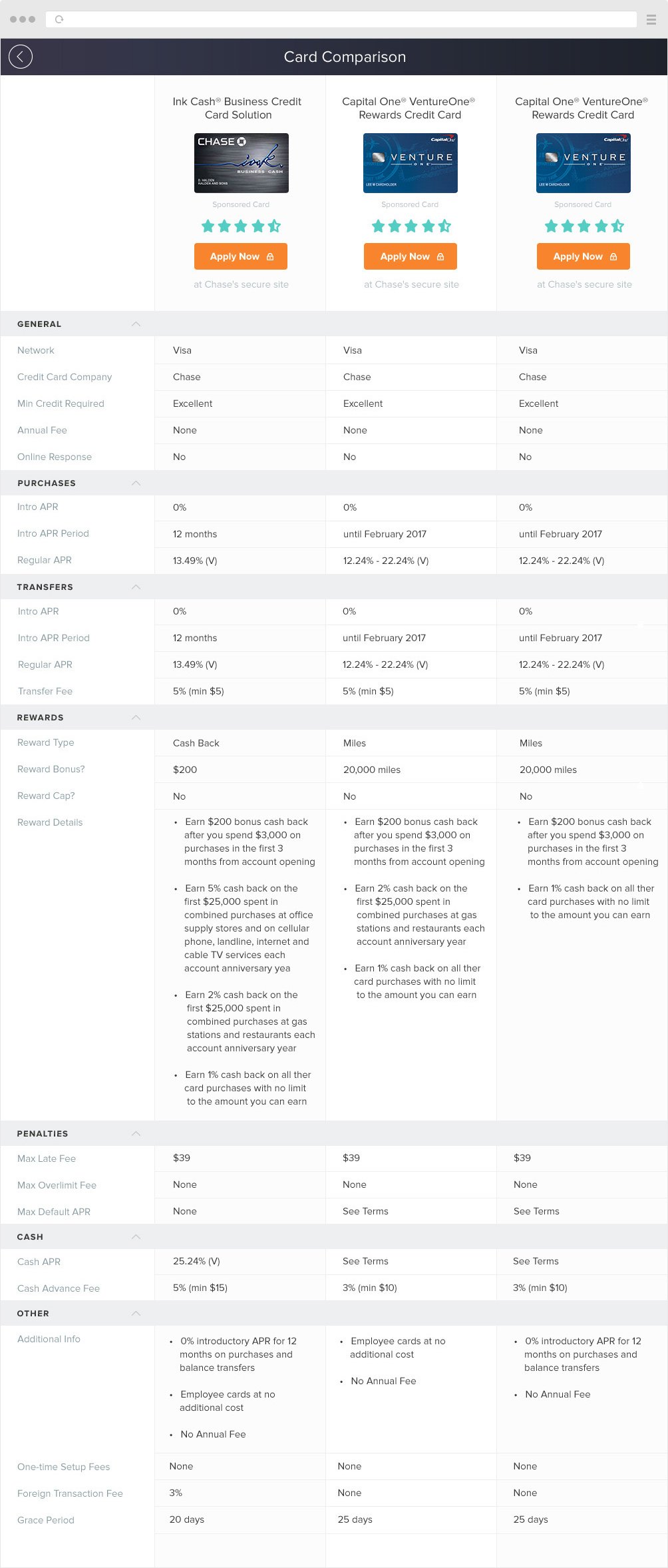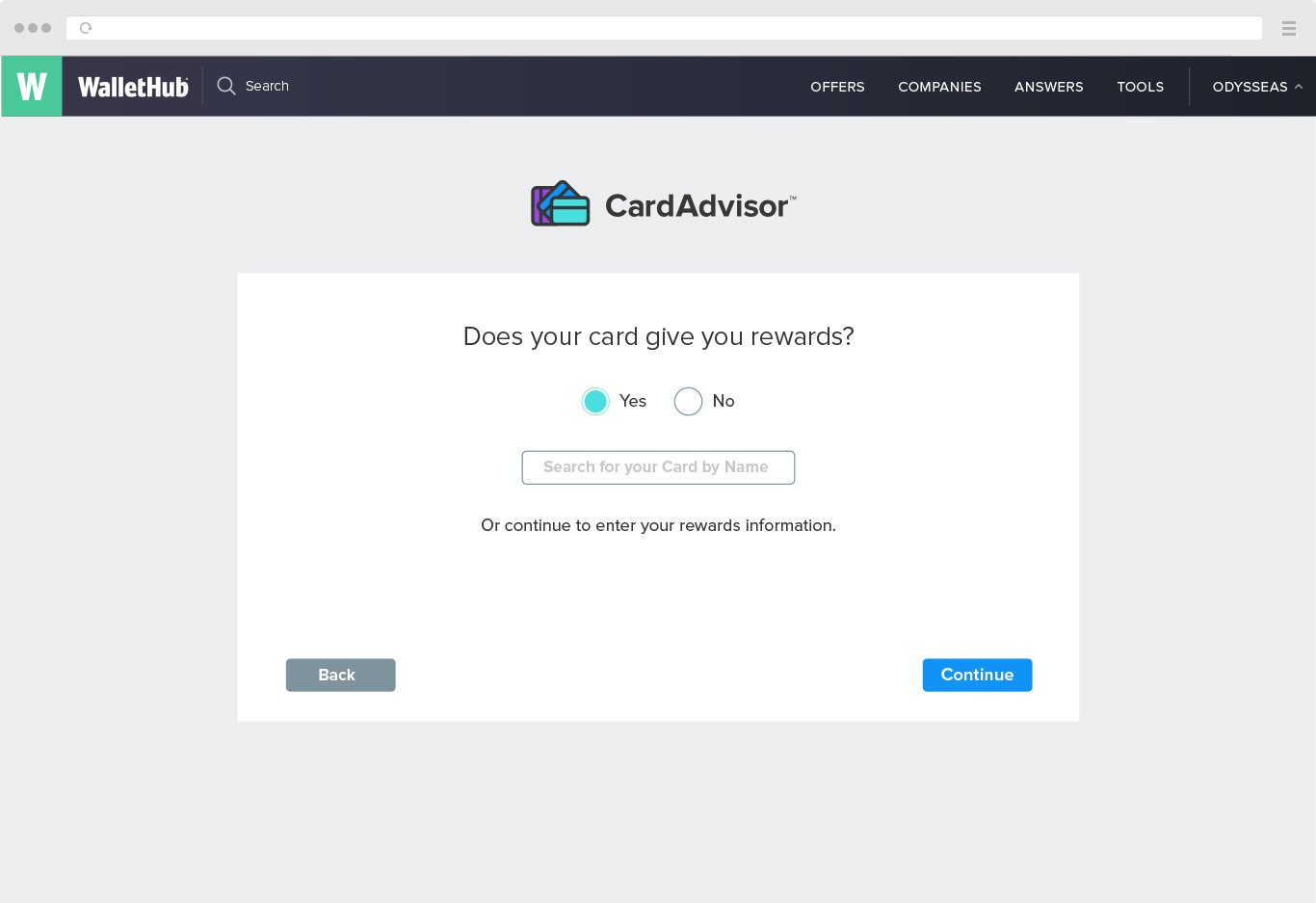 Searching for credit card which suits your needs is not easy if a web page that you are using is hard to read or navigate. Our goal was to create a credit card search tool inside of our WalletHub page, where people can use filtering options and see what credit cards available for them. Results depends on various variables, for example: a.) user has a bad or good credit b.) they are studying or having businesses c.) looking for best reward rates, etc.