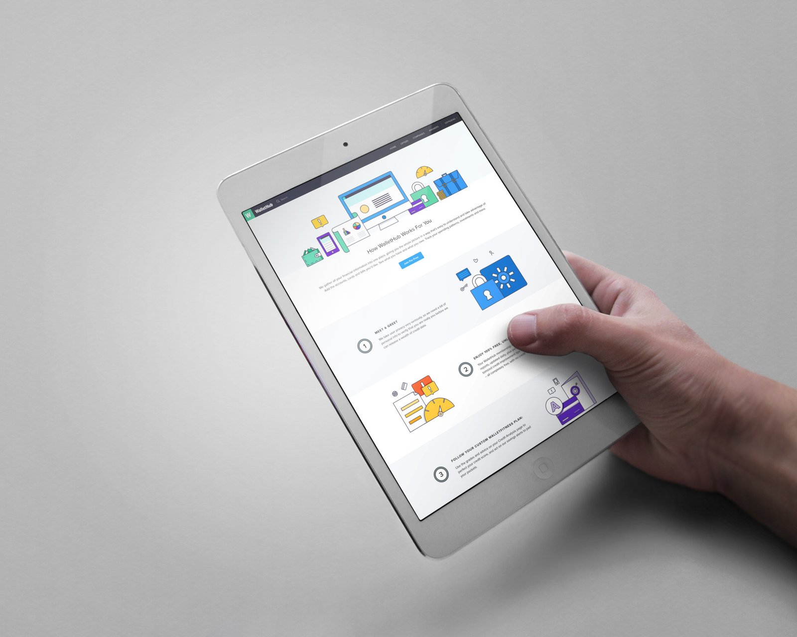 How it works page for Wallethub that needed to represent a clear explanation of how their system, product and service works. Here is some of my designed versions.